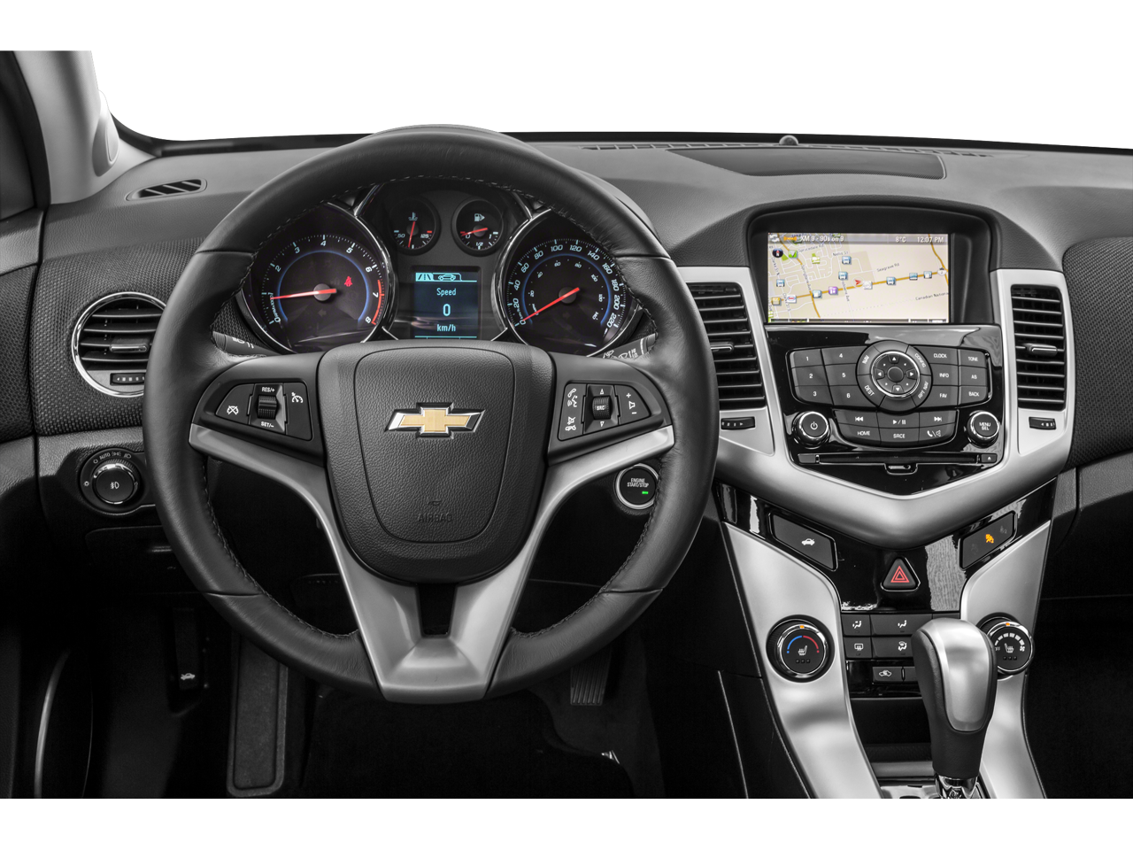 RS PACKAGE includes rocker moldings, unique front and rear fascias, (T3Y) front projector-type fog lamps, (T43) rear spoiler and uplevel jeweled instrument panel cluster with chrome trim rings (uplevel cluster is standard on LTZ), ENGINE, ECOTEC TURBO 1.4L VARIABLE VALVE TIMING DOHC 4-CYLINDER SEQUENTIAL MFI (138 hp [103 kW] @ 4900 rpm, 148 lb-ft of torque [199.8 N-m] @ 1850 rpm), TRANSMISSION, 6-SPEED AUTOMATIC, ELECTRONICALLY CONTROLLED WITH OVERDRIVE, AUDIO SYSTEM, CHEVROLET MYLINK RADIO AM/FM stereo with CD player and MP3 playback, includes 7 diagonal color touch-screen display.