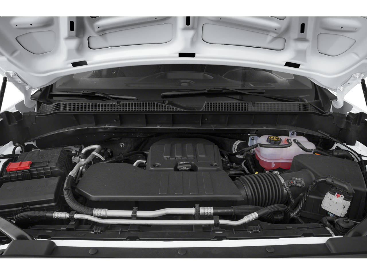 (420 hp [313 kW] @ 5600 rpm, 460 lb-ft of torque [624 Nm] @ 4100 rpm); featuring Dynamic Fuel Management that enables the engine to operate in 17 different patterns between 2 and 8 cylinders, depending on demand, to optimize power delivery and efficiency Includes (N10) dual exhaust and (NQH) 2-speed transfer case.), includes (DRZ) Rear Camera Mirror and (UV6) 15 Diagonal Head-Up Display (Includes (UVN) Bed View Camera. includes (A48) rear sliding power window, (UG1) Universal Home Remote, (KA6) Rear Heated Outboard Seats, and (KSG) Adaptive Cruise Control-Camera, with six functional load/access features, NOTE: Auto release can be disabled if ball hitch is installed. See Owners manual for details, with Google built-in, 13.4 diagonal HD color touchscreen, includes multi-touch display, AM/FM stereo, Bluetooth® streaming audio for music and most phones; featuring wireless Android Auto® and Apple CarPlay® capability for compatible phones, advanced voice recognition, in-vehicle apps, personalized profiles for infotainment and vehicle settings (STD), with Electronic Transmission Range Selector, (ETRS), electronically controlled with overdrive, tow/haul mode and steering column paddle shifters. Includes Cruise Grade Braking and Powertrain Grade Braking (STD). Privacy Glass, Keyless Entry, Steering Wheel Controls, Electronic Stability Control, Alarm.