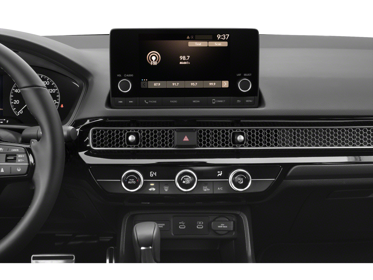 - Radio: 180-Watt Audio System -inc: 8 speakers, 7" color touchscreen, Bluetooth® HandsFreeLink and streaming audio, HondaLink, Speed-Sensitive Volume Compensation (SVC), Radio Data System (RDS), Apple CarPlay and Android Auto compatibility and USB-C 3.0A smartphone/audio interface/charging port in front seats
